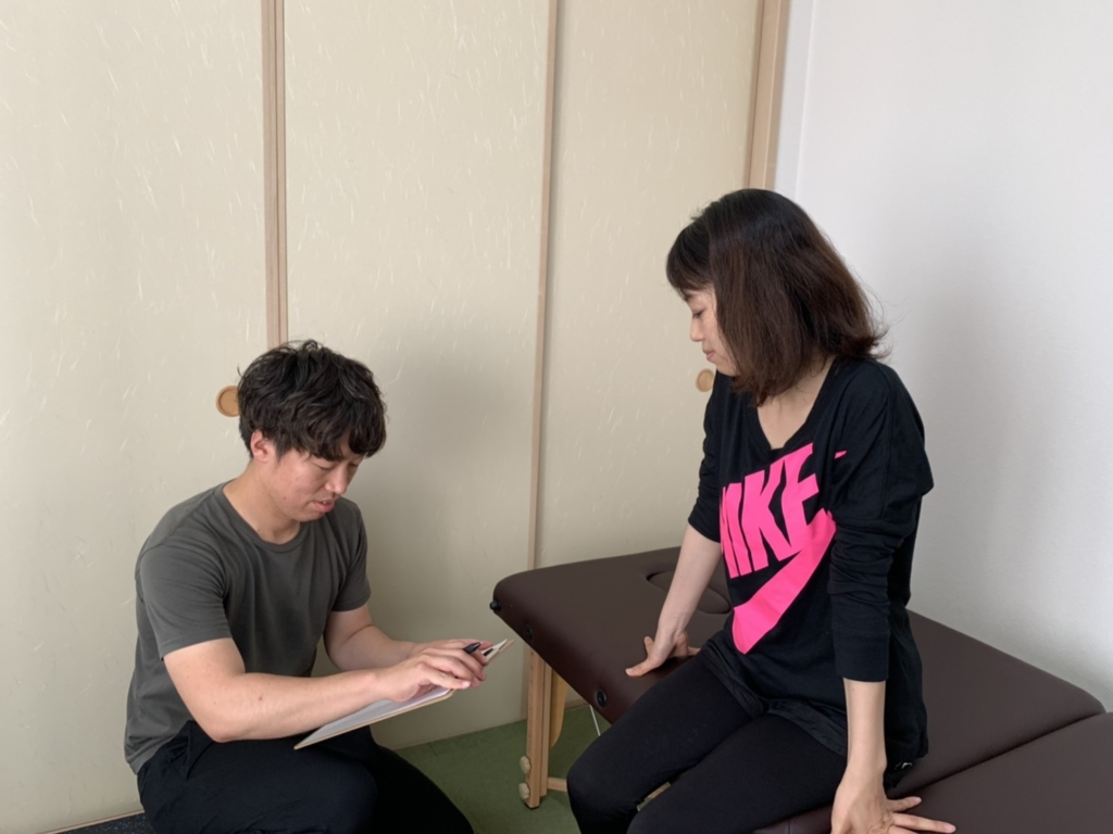ご本人の訴えなどを確認。身体の状態、生活習慣や環境、食事内容から評価し、現在の状態や推察される原因などをわかりやすく説明。最適なトレーニング、施術へ。